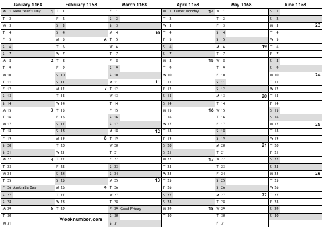 1168 calendar