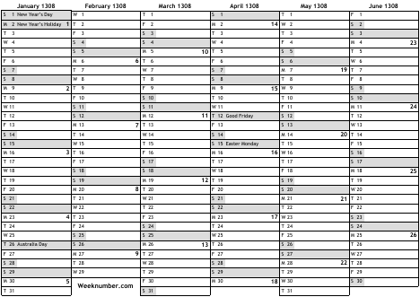 1308 calendar