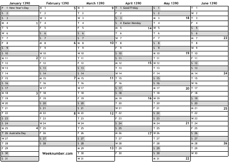 1390 calendar