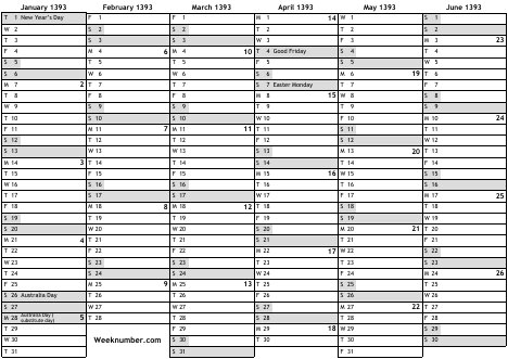 1393 calendar
