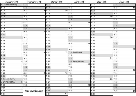 1394 calendar