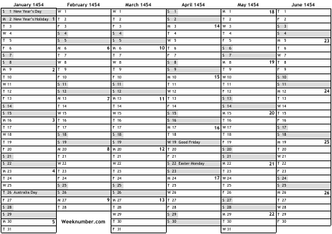 1454 calendar