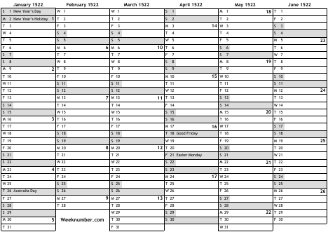 Australian holidays 1522