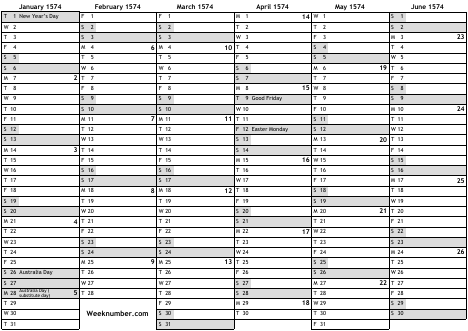 1574 calendar