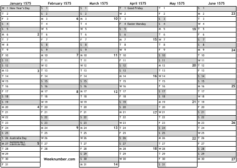 1575 calendar