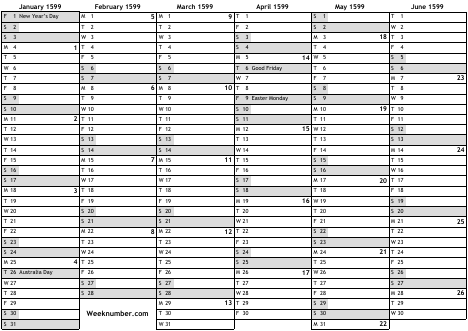 1599 calendar