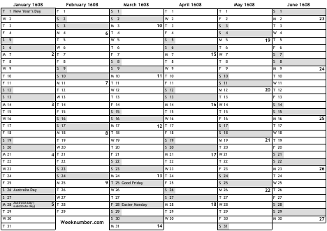 1608 calendar