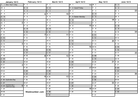 Australian holidays 1613