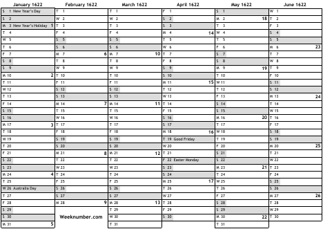 Australian holidays 1622
