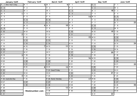 1649 calendar