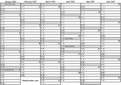 1693 calendar