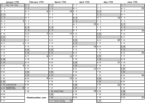 1755 calendar