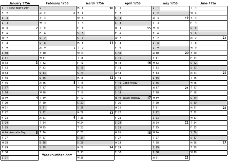 1756 calendar