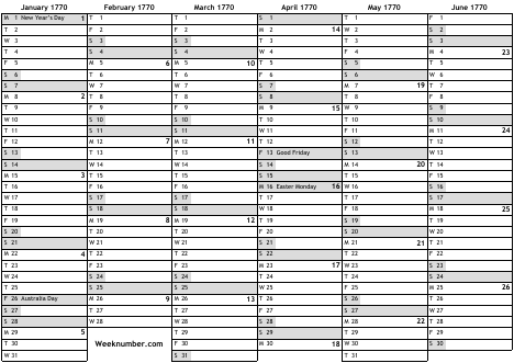 1770 calendar