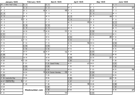 1845 calendar