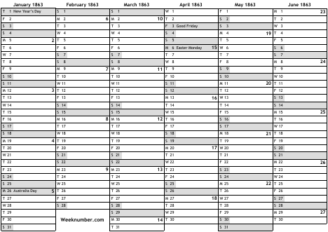 1863 calendar