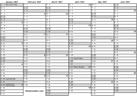 1867 calendar