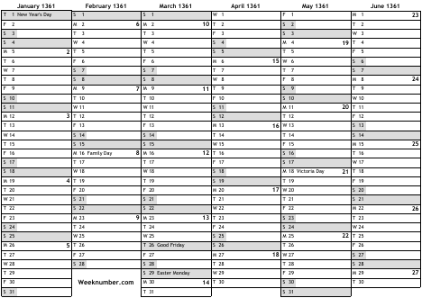 1361 calendar