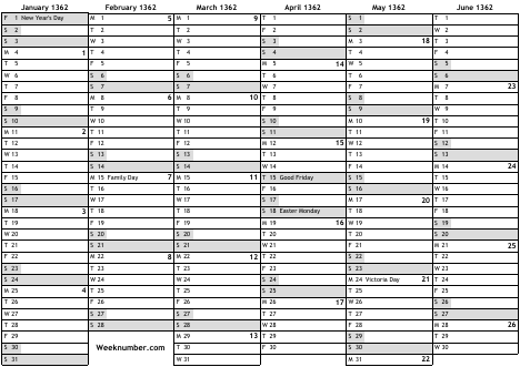 1362 calendar