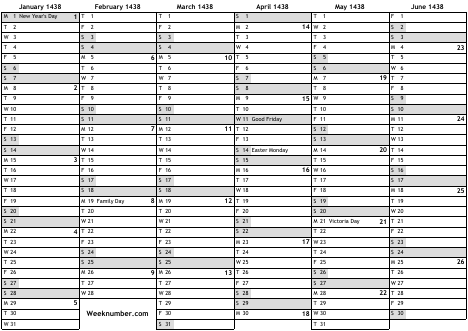 1438 calendar