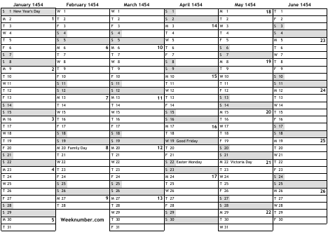 1454 calendar
