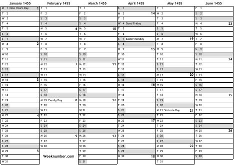 1455 calendar