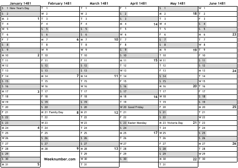 1481 calendar