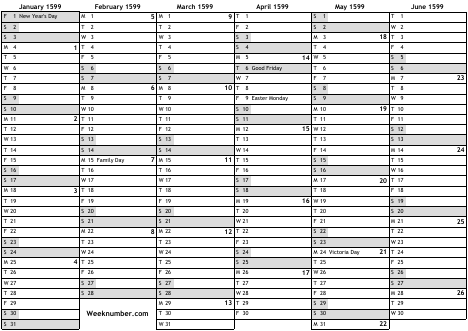 1599 calendar