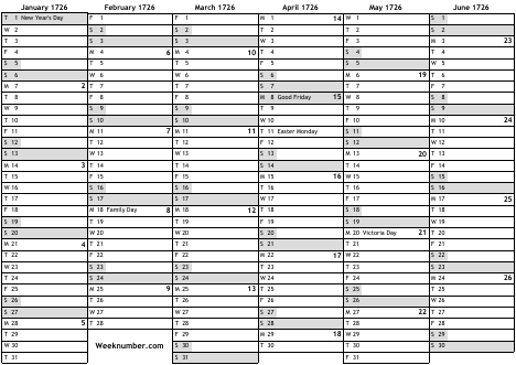 1726 calendar