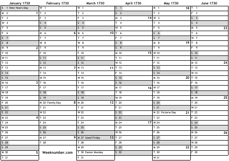 1730 calendar