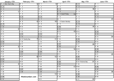 1751 calendar