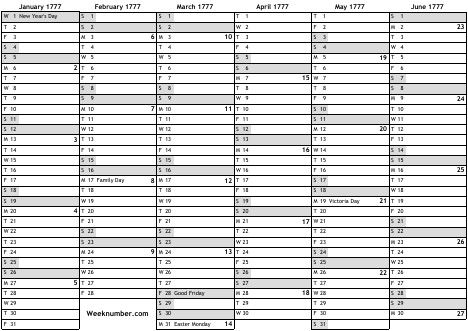 1777 calendar