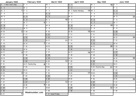 1820 calendar