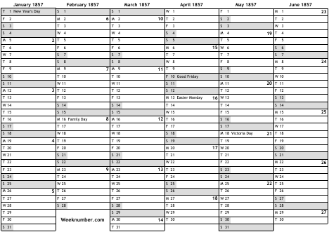 1857 calendar