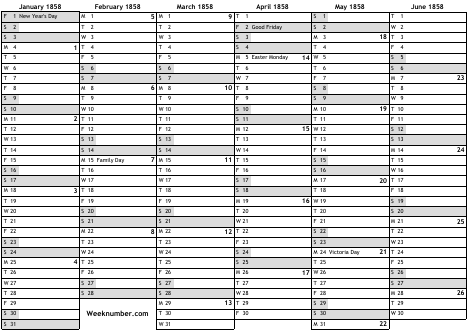 1858 calendar