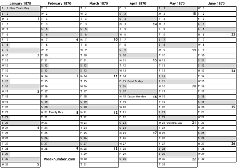 1870 calendar