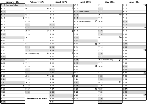 1874 calendar