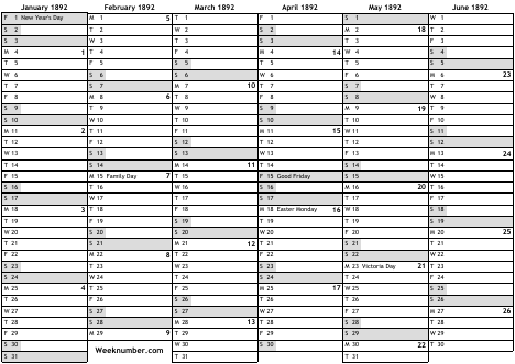 1892 calendar