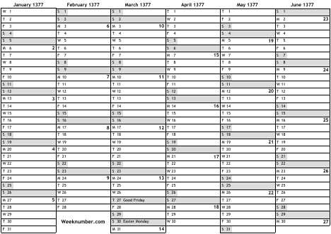 1377 calendar