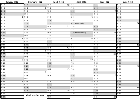 1452 calendar