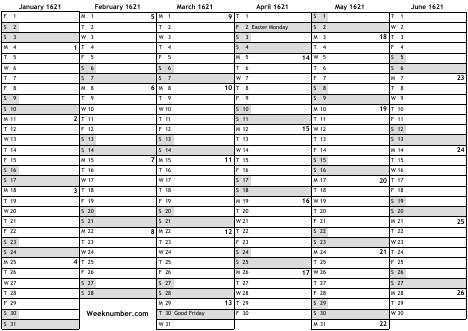 1621 calendar