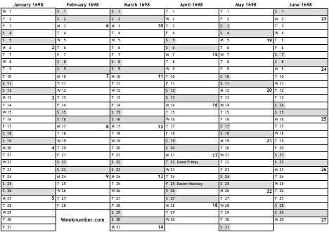 1698 calendar