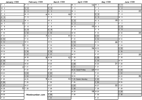 1709 calendar