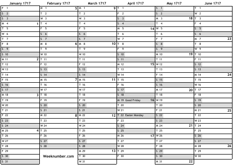 1717 calendar