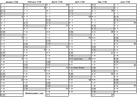 1728 calendar