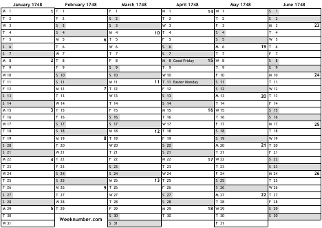 1748 calendar