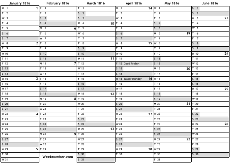 1816 calendar