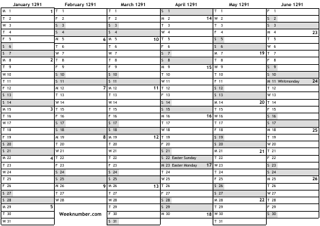 1291 calendar