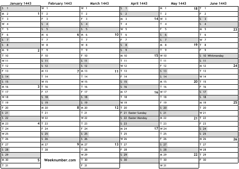 1443 calendar