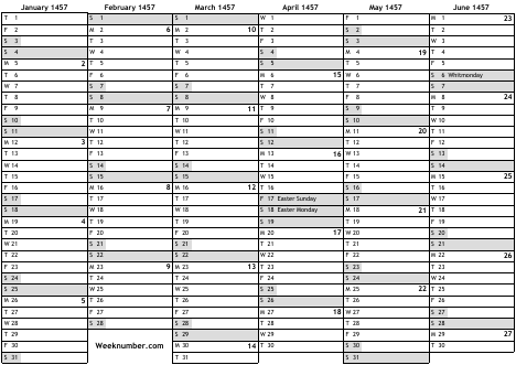 1457 calendar